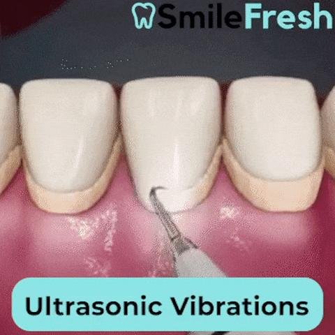 The SmileFresh™ Wand uses ultrasonic technology to produce sound waves that create up to 180 vibrations per second. These vibrations breakup and remove dental calculus and stains and disrupt bacteria cells.