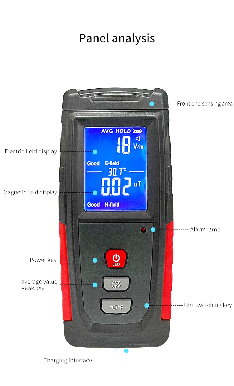 Rechargeable EMF Meter With Automatic Alarm Real-time Measurement