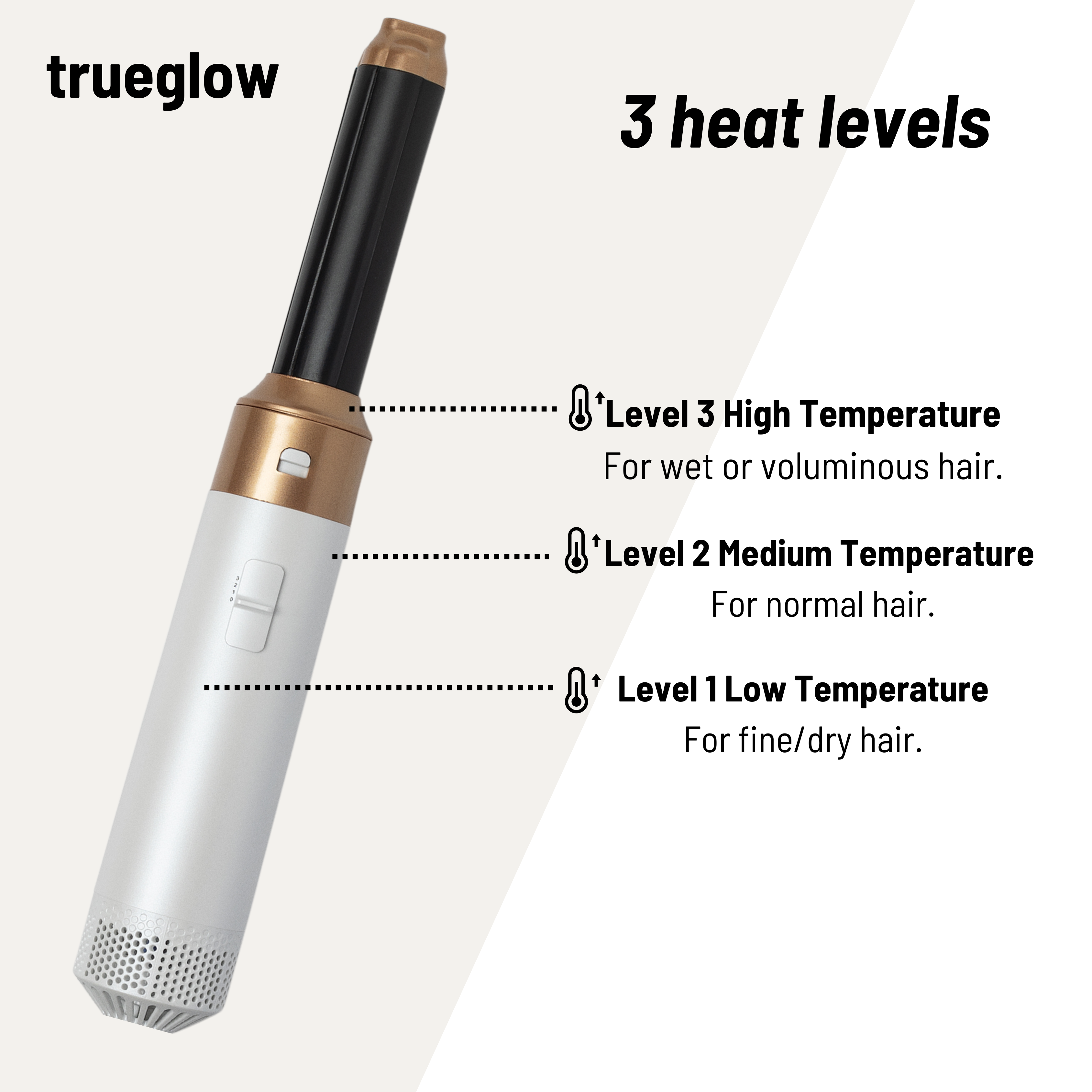 The TrueGlow Hair Styler is a revolutionary innovation in hair styling, enabling quick and flawless hairstyle creation. With its 5 versatile attachments and 3 adjustable heat settings, it offers maximum styling flexibility, delivering results that feel like a fresh visit to the salon.